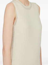semi-sheer knit long dress Highlights - Off-white - Wool blend - Knitted construction - Semi-sheer panels - Round neck - Sleeveless - Ankle-length Made in Italy Composition Wool 55%, Alpaca 34%, Silk 11% Washing instructions Dry Clean Only