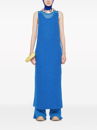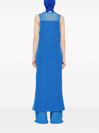 semi-sheer knit long dress Highlights - Cerulean blue - Wool blend - Knitted construction - Semi-sheer panels - Round neck - Sleeveless - Ankle-length Made in Italy Composition Wool 55%, Alpaca 34%, Silk 11% Washing instructions Dry Clean Only