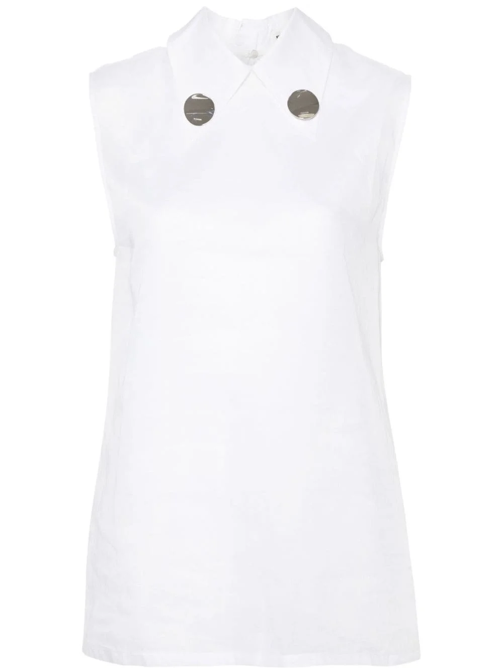 sheer blouse Highlights - White - Textured finish - Pointed flat collar - Sleeveless - Semi-sheer construction - Internal cotton slip top - Straight hem - Concealed rear zip fastening - Rear press-stud fastening Made in Italy Composition Outer: Cotton 100% Lining: Viscose 95%, Elastane 5% SIZE & FIT Model measurements Height 5 ft 9 in(1.75 m) Bust/Chest 34.64 in(88 cm) Hips 36.61 in(93 cm) Waist 26.37 in(67 cm) FittingInformation Designed for a relaxed fit, this piece allows for comfort and movement when worn The detachable slip sits just away from the body, offering a close yet comfortable fit Made from a lightweight fabric This piece fits true to size – take your usual size