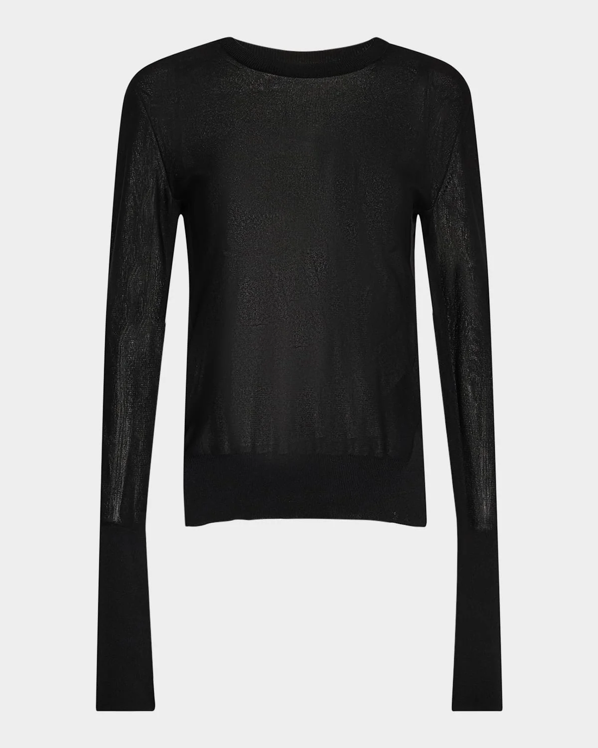 Jil Sander sweater in a sheer knit Crew neckline Long sleeves; elongated slit cuffs Relaxed fit Ribbed cuffs and hem Pullover style Viscose/rayon/cellulose acetate/nylon/polyamide Dry clean Made in Italy