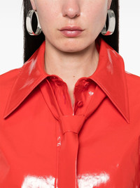tie-detail shirt Highlights - Bright red - Front button fastening - Buttoned cuffs - Short side slits - Curved hem Made in Italy Composition Lining: Viscose 100%, Cotton 100% Outer: Polyurethane 100%, Linen/Flax 100% SIZE & FIT Model measurements Height 5 ft 10 in(1.78 m) Bust/Chest 33.46 in(85 cm) Hips 36.22 in(92 cm) Waist 23.22 in(59 cm) FittingInformation Designed for a relaxed fit, this piece allows for comfort and movement when worn The tie fastening gives an adaptable and personalised fit Made from a midweight non-stretch fabric