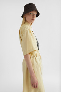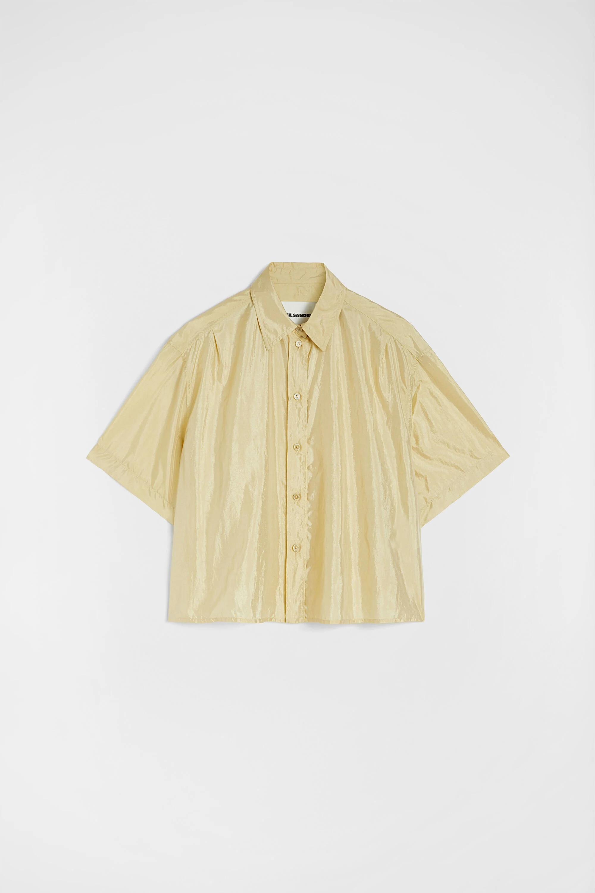 Short-sleeved cropped silk and nylon canvas shirt with side slits Details - cropped and wide fit - dropped shoulders - centre-front button closure - side slits - silk and nylon canvas - 64% polyamide-nylon 36% silk - made in Italy - StyleID: J40DL0167J70003265 Care - dry clean only - iron with care Fit - model is 177cm/5'9" and is wearing a size 34 DE - Please note that the physical label of the item will show the German size