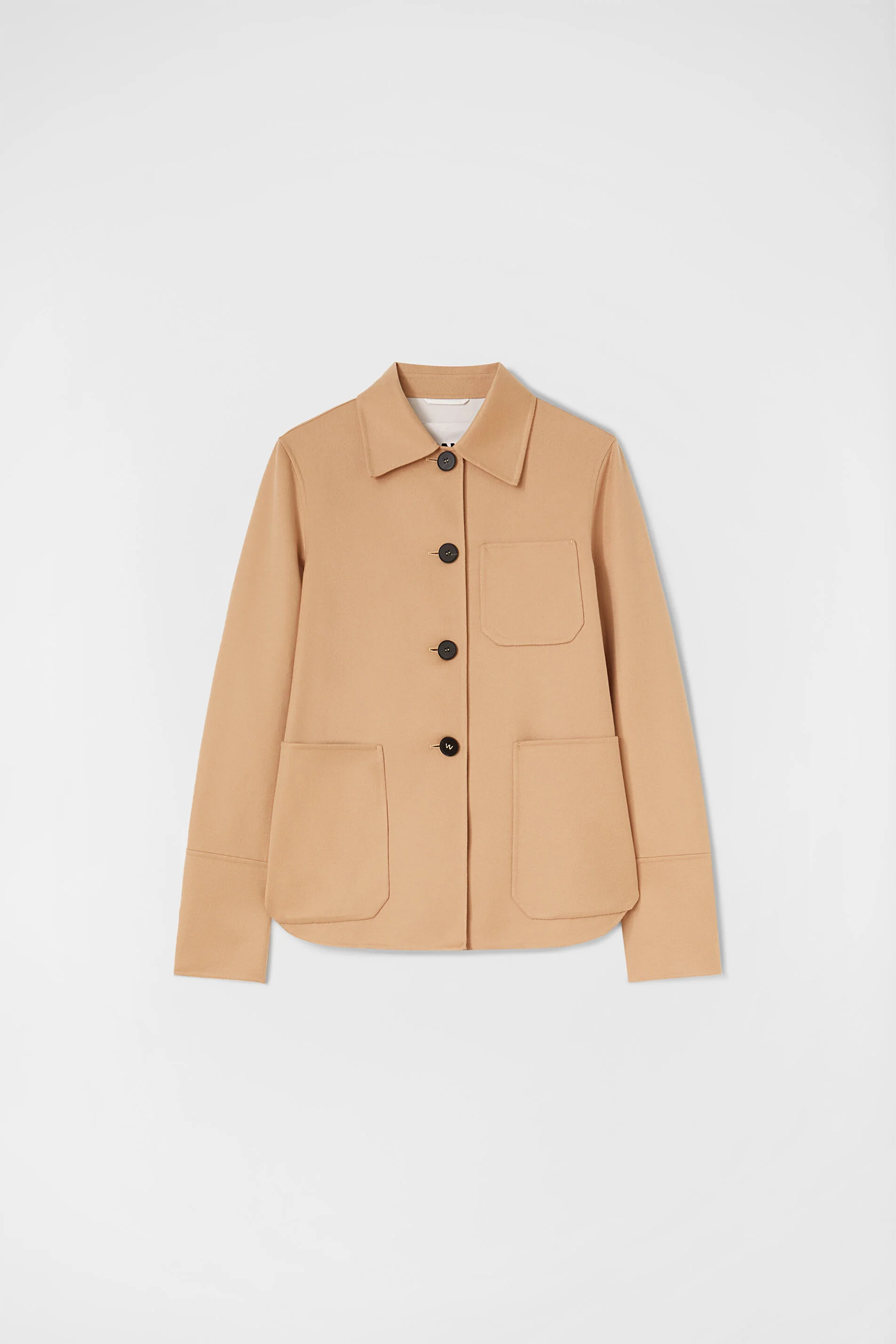 Light double cashmere overshirt with curved hem and front patch pockets Details - relaxed fit and boxy shape - shirt collar - button closure - three patch pockets - rounded hem - light double cashmere - 100% cashmere, lining 100% viscose-rayon - made in Italy - StyleID: J04BN0004J35001233 Care - dry clean only - iron with care Fit - model is 177cm/5'9" and is wearing a size 34 DE - Please note that the physical label of the item will show the German size