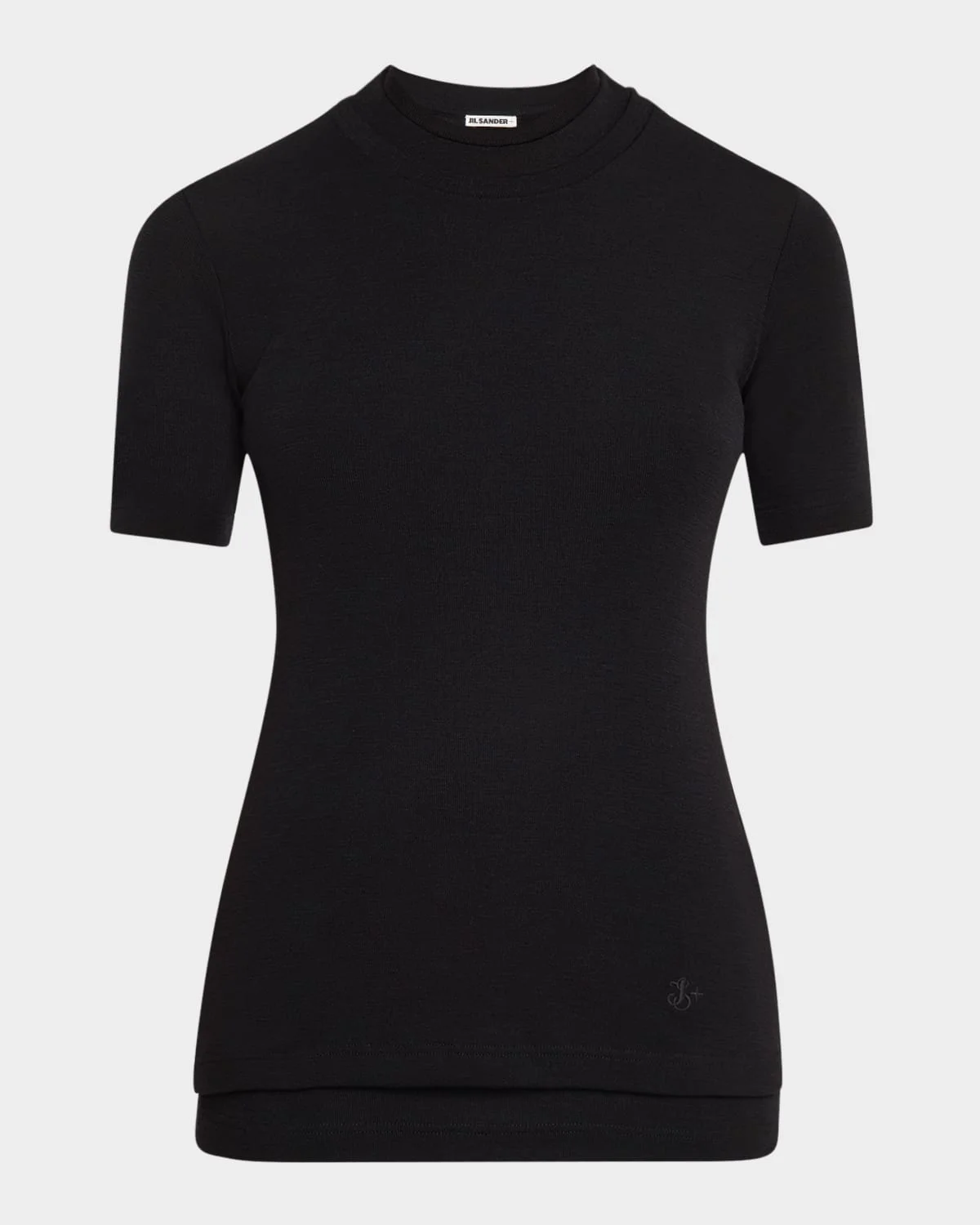 Jil Sander layered T-shirt featuring a monogram embroidered hem Crew neckline Short sleeves Fitted Pullover style Cotton Made in Italy