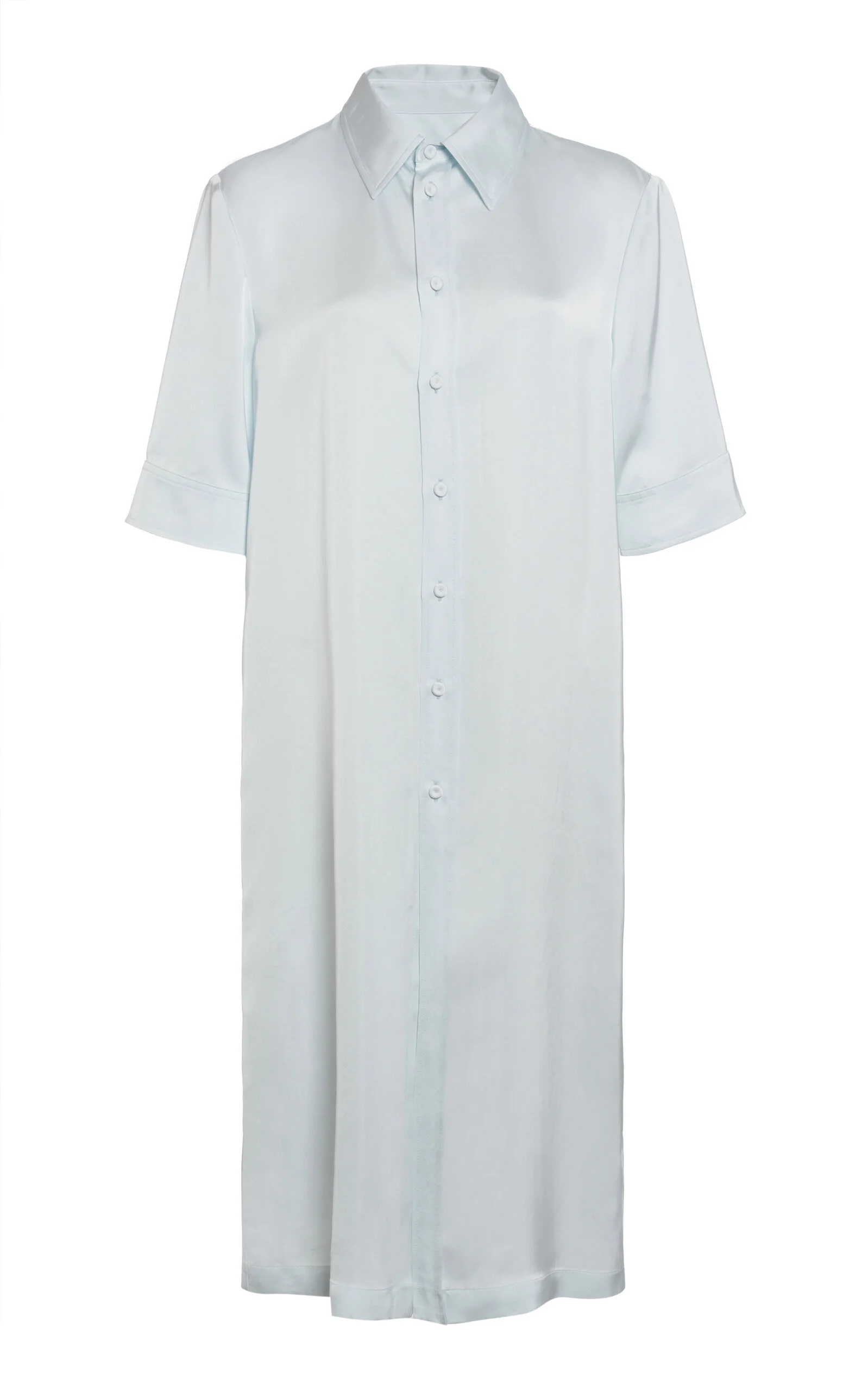 Jil Sander is the epitome of modernity and sophistication. Its unconditional dedication to design combines elegance and purity with innovative materials and exceptional quality. The refinement of cuts, the play on contrasts, and the perfection of details give form to an approach to fashion defined by deliberation, rigor, and artistry. Long fitted shirt with cropped sleeve and visible button stand. Shorter option merle. PRODUCT DETAILS - Pre-Fall '25 - Button fastening - Composition: 100% viscose-rayon - Designer color: Sky - Dry clean - Imported SIZE & FIT - Designed for a slim fit