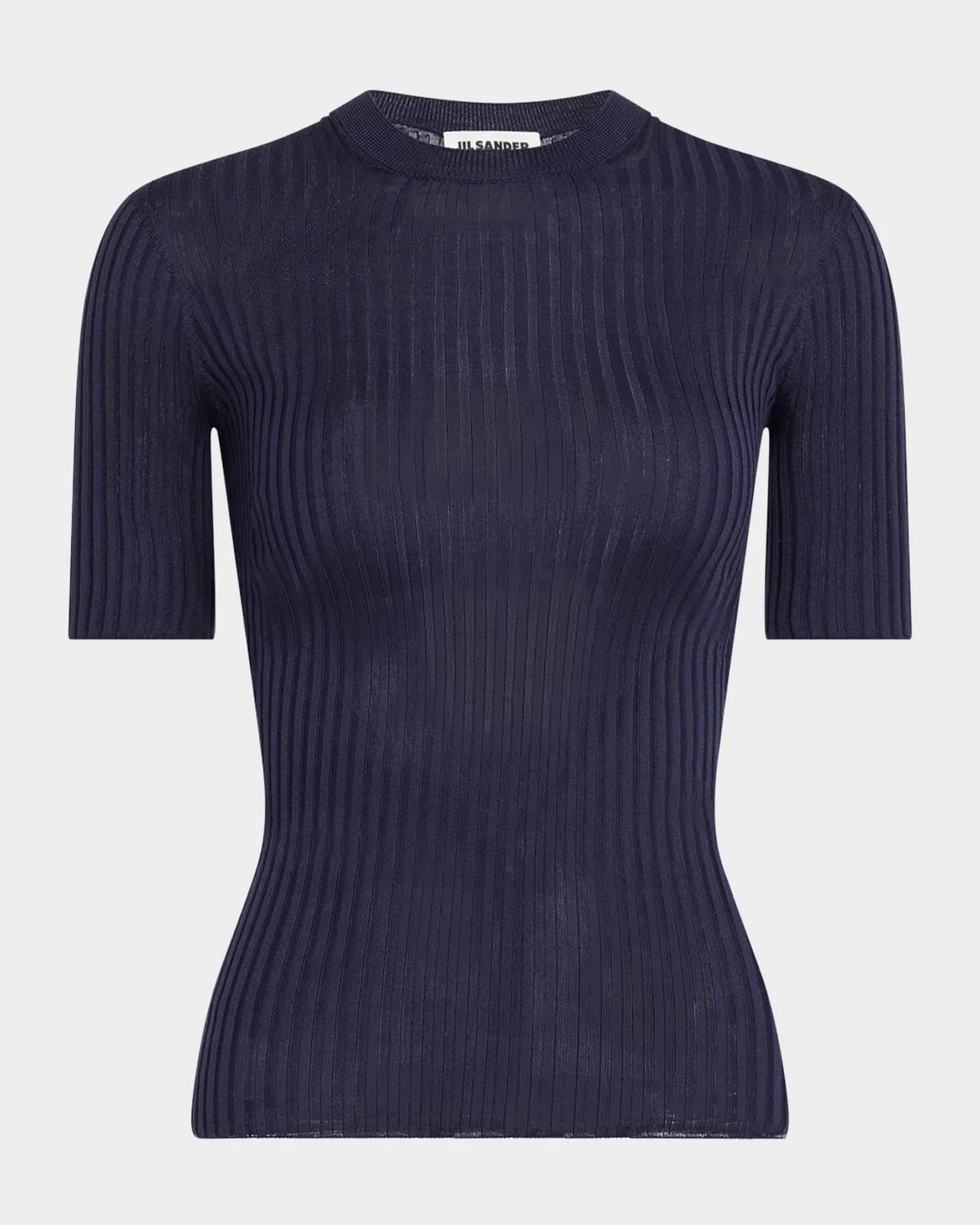 Jil Sander T-shirt in wide ribbed knit Crew neckline Short sleeves Fitted Pullover style Silk Dry clean Made in Italy