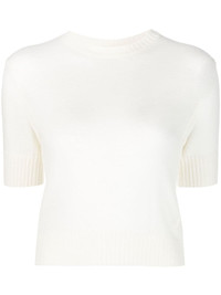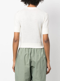 short-sleeves wool top Highlights - White - Wool - Knitted construction - Crew neck - Short sleeves - Straight hem - Ribbed cuffs and hem Made in Italy Composition Wool 100% SIZE & FIT Model measurements Height 5 ft 11 in(1.8 m) Bust/Chest 31.49 in(80 cm) Hips 35.82 in(91 cm) Waist 24.8 in(63 cm) FittingInformation Designed for a slim fit that sits just away from the body offering a close yet comfortable fit Made with a lightweight knit, this piece offers some stretch This piece fits true to size – take your usual size Washing instructions Dry Clean Only