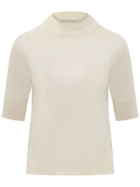 shot-sleeve T-shirt Highlights - White - Wool-silk blend - Knitted construction - Mock neck - Short sleeves - Straight hem Made in Italy Composition Wool 60%, Silk 30%, Cashmere 10% SIZE & FIT FittingInformation Designed for a slim fit that sits just away from the body offering a close yet comfortable fit Made with a lightweight knit, this piece offers some stretch