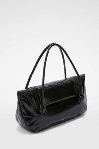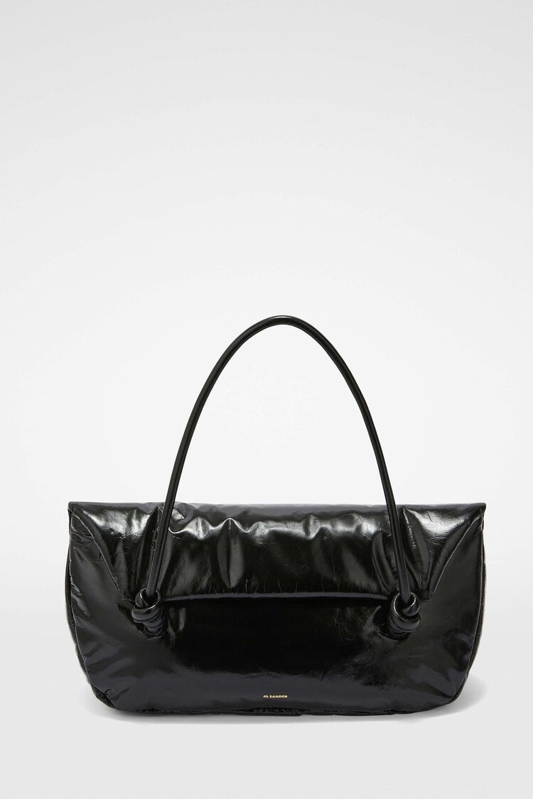 Medium-sized padded leather shoulder bag with embossed Jil Sander logo Details - rectangular shape - leather handles with knot detail - inner zipped pocket - snap button closure - nappa lining - blind embossed Jil Sander logo - 100% calf leather - made in Italy - StyleID: 8050393029999