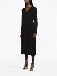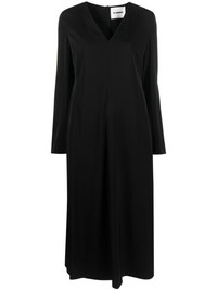 long-sleeve midi dress Favouring understated designs, Jil Sander introduces this midi dress in a timeless black. Its effortless silhouette drapes delicately, embodying a sense of refined elegance. Highlights - Black - Stretch-design - V-neck - Rear zip fastening - Long sleeves - Straight hem - Calf-length Made in Italy Composition Lining: Viscose 95%, Spandex/Elastane 5% Outer: Viscose 100% SIZE & FIT Model measurements Height 5 ft 11 in(1.8 m) Bust/Chest 34.25 in(87 cm) Hips 35.82 in(91 cm) Waist 24.8 in(63 cm) Washing instructions Read Manufacturer Guidelines