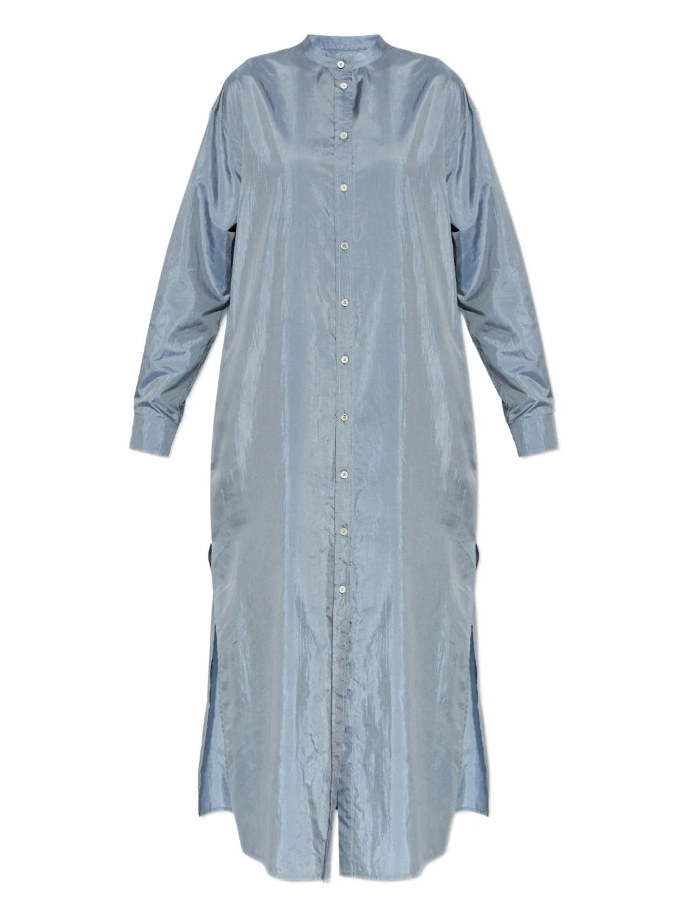 side-slit shirt dress Highlights - Light blue - Button fastening - Side slits - Long sleeves - Band collar - Shirt style Made in Italy Composition Polyamide 64%, Silk 36% Washing instructions Read Manufacturer Guidelines