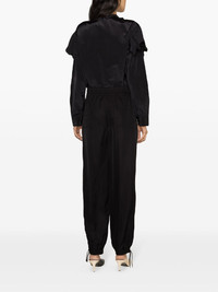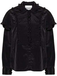 ruffled button-up blouse Highlights - Black - High-shine finish - Pleat detailing - Ruffled detailing - Frilled neckline - Concealed front button fastening - Long sleeves - Buttoned cuffs - Curved hem Made in Italy Composition Polyamide 64%, Silk 36% SIZE & FIT Model measurements Height 5 ft 10 in(1.78 m) Bust/Chest 31.49 in(80 cm) Hips 35.03 in(89 cm) Waist 23.62 in(60 cm) FittingInformation Designed to be unstructured, offering a loose fit throughout Made from a lightweight non-stretch fabric This piece fits true to size – take your usual size