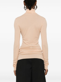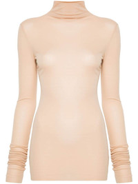 silk T-shirt Highlights - Blush beige - Silk - Crepe texture - High neck - Straight hem Made in Italy Composition Silk 100% SIZE & FIT Model measurements Height 5 ft 10 in(1.77 m) Bust/Chest 29.92 in(76 cm) Hips 34.25 in(87 cm) Waist 23.62 in(60 cm) FittingInformation Designed for a close fit throughout Made from a lightweight non-stretch fabric, this piece offers minimal elasticity when worn This piece fits true to size – take your usual size