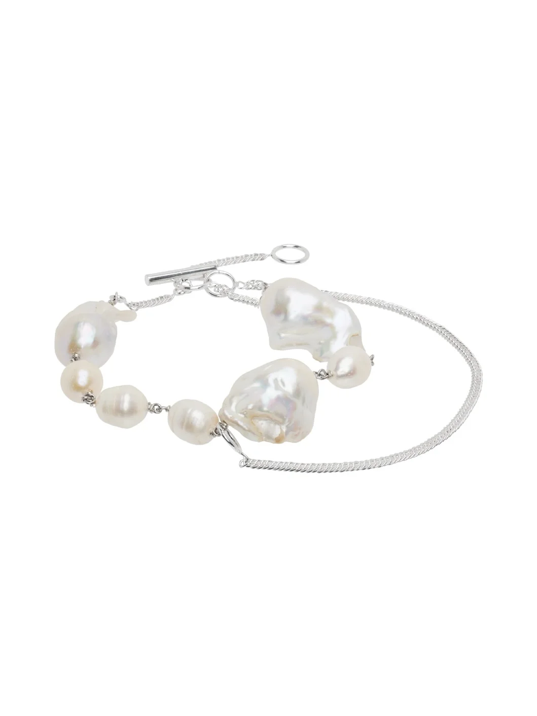 Handcrafted beaded baroque freshwater pearl bracelet in off-white. Fine curb chain detailing in sterling silver at length. · Logo-engraved toggle fastening · L9.5" Supplier color: Silver