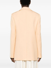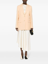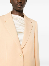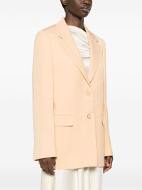 single-breasted blazer Highlights - Light orange - Interlock weave - Notched lapels - Long sleeves - Two side flap pockets - Central rear vent - Internal slip pockets - Full lining - Front button fastening Made in Italy Composition Outer: Viscose 58%, Silk 42% Lining: Viscose 100% SIZE & FIT Model measurements Height 5 ft 10 in(1.77 m) Bust/Chest 32.28 in(82 cm) Hips 35.03 in(89 cm) Waist 25.19 in(64 cm) FittingInformation Designed to be unstructured, offering a loose fit throughout The internal shoulder pads offer a structured shape Made from a midweight non-stretch fabric This piece fits true to size – take your usual size