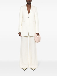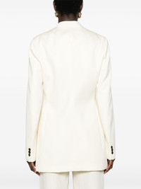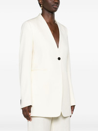 single-breasted wool blazer Highlights - Ecru - Wool - Interlock twill weave - Dart detailing - No lapels - Front button fastening - Shoulder pads - Long sleeves - Buttoned cuffs - Two front welt pockets - Italian rear vents - Straight hem - Full lining Made in Italy Composition Lining: Viscose 100%, Cotton 100% Outer: Wool 100% SIZE & FIT Model measurements Height 5 ft 10 in(1.77 m) Bust/Chest 32.28 in(82 cm) Hips 35.03 in(89 cm) Waist 25.19 in(64 cm) FittingInformation Designed for a slim fit that sits just away from the body offering a close yet comfortable fit The internal shoulder pads offer a structured shape Made from a midweight non-stretch fabric This piece fits true to size – take your usual size