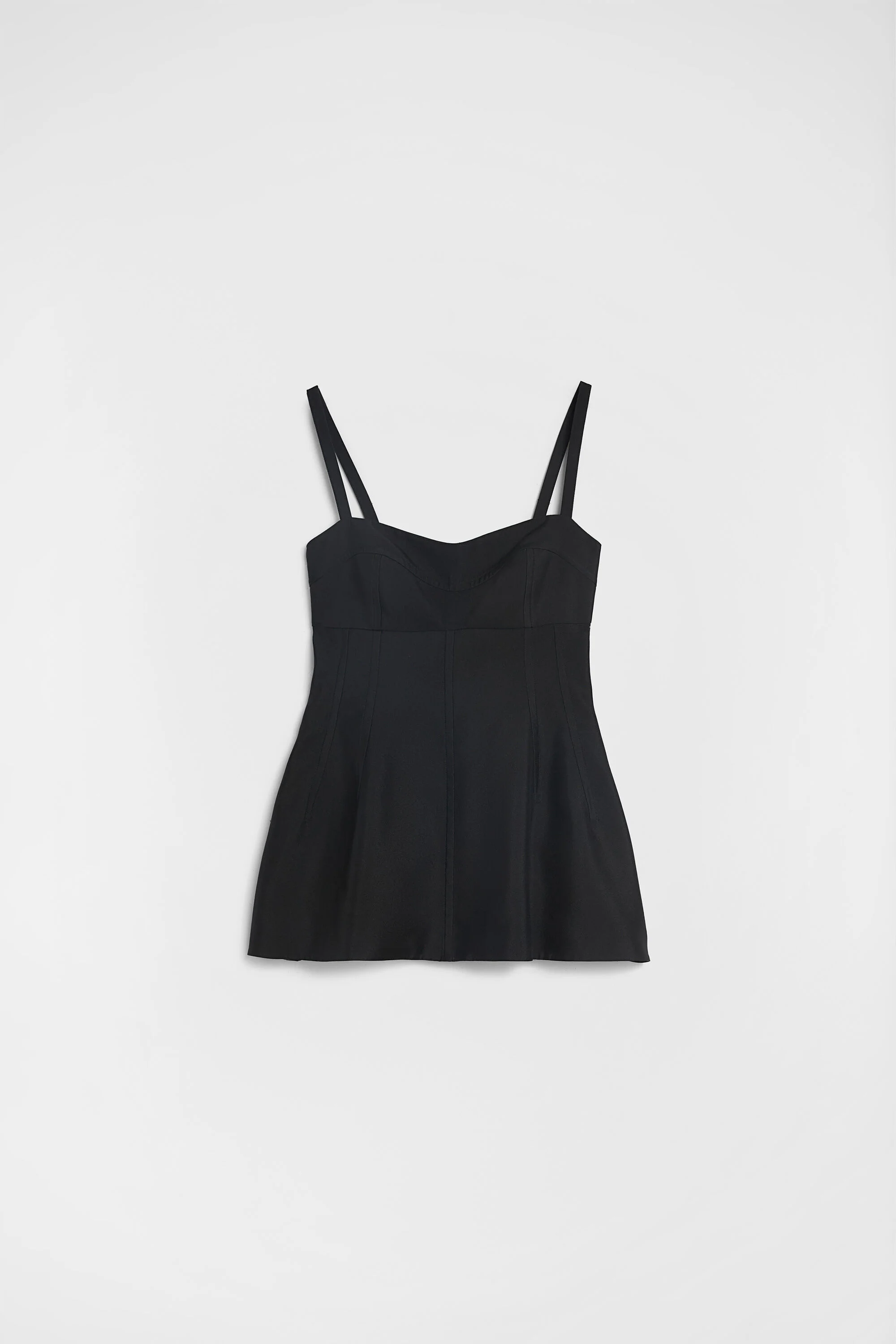 Sleeveless technical gabardine top with sculptural voluminous hem Details - fitted - thin straps - centre-back zip closure - viscose lining - techno gabardine - 65% polyamide-nylon 35% silk - made in Italy - StyleID: J04NC0107J70013001 Care - dry clean only - iron with care Fit - model is 177cm/5'9" and is wearing a size 34 DE - Please note that the physical label of the item will show the German size