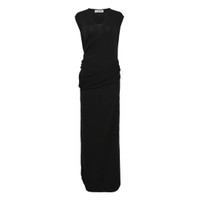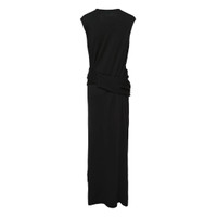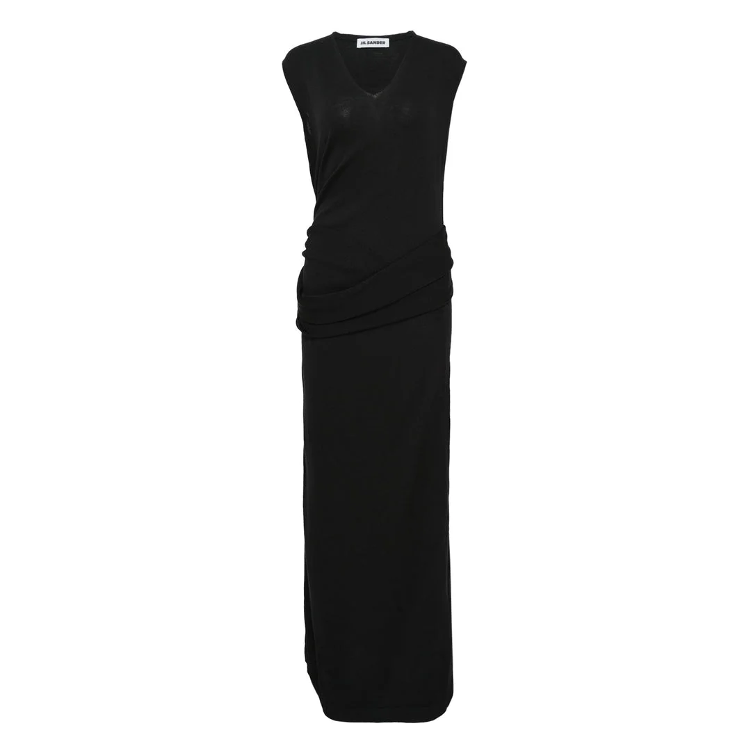 600077921BLK034 / J01CT0267/J14828/001 - Signature metal pin brooch detail - V-neckline with draped front - Sleeveless design - Side ruching for flattering fit - Premium jersey construction - Maxi length - Slim silhouette The Jil Sander Sleeveless Draped Dress delivers minimalist sophistication with architectural draping and signature pin brooch detailing. Crafted from premium jersey fabric in classic black, featuring the brand's signature clean lines and fluid silhouette. The strategic draping creates visual interest while maintaining the refined aesthetic Jil Sander is renowned for.