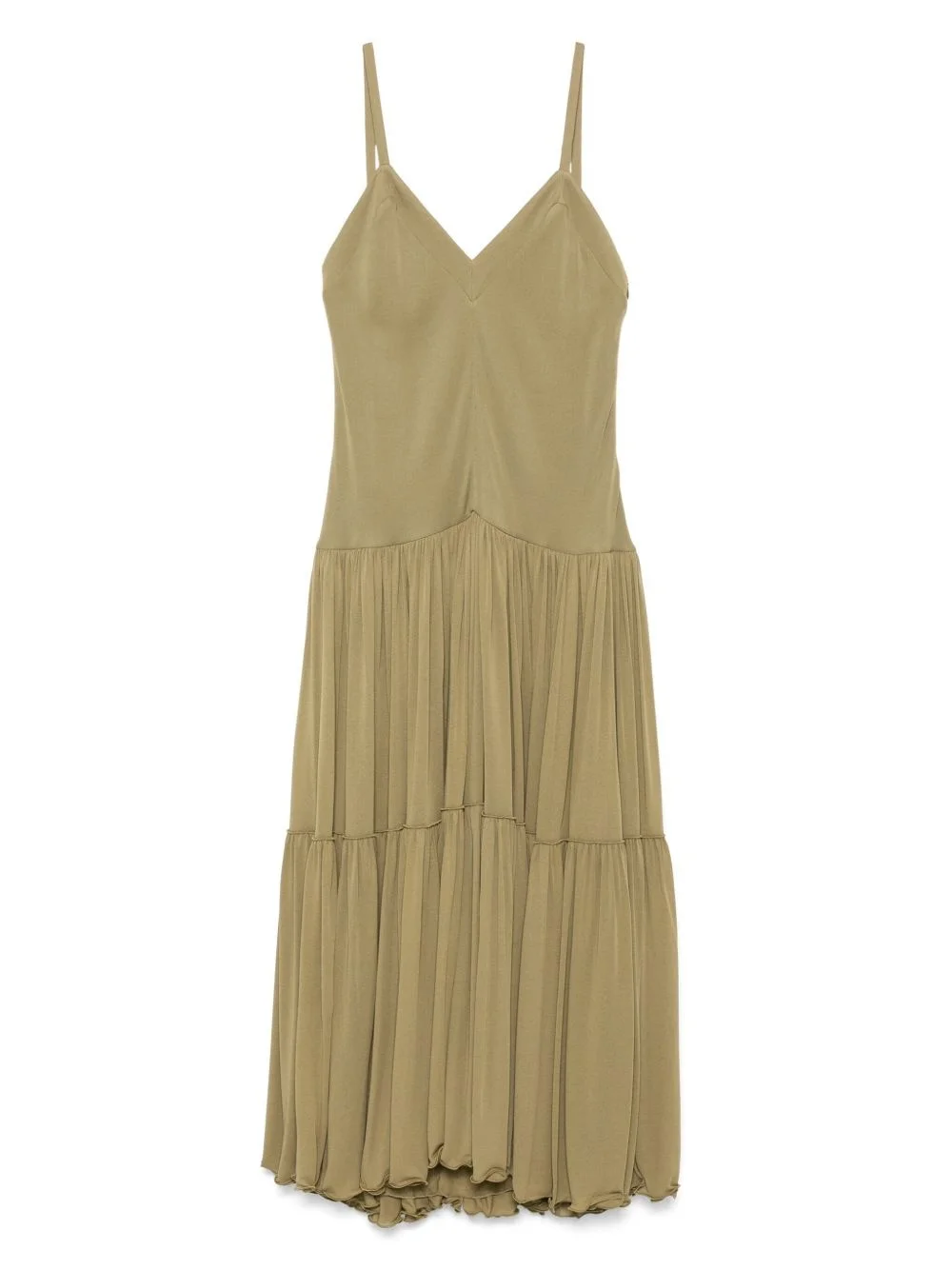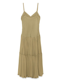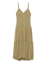 sleeveless midi dress Highlights - Olive green - Concealed side hook and zip fastening - V-neck - Full lining Made in Italy Composition Outer: Viscose 100% Lining: Viscose 100% SIZE & FIT Model measurements Height 5 ft 10 in(1.77 m) Bust/Chest 32.28 in(82 cm) Hips 35.03 in(89 cm) Waist 25.19 in(64 cm)