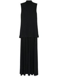 layered midi dress Highlights - Black - Layered design - Single rear button fastening - Rear tie fastening - Roll neck - Sleeveless - Keyhole detail to the rear - A-line skirt - Unlined - Straight hem - Mid-length Made in Italy Composition Viscose 82%, Polyamide 18% SIZE & FIT Model measurements Height 5 ft 10 in(1.77 m) Bust/Chest 32.28 in(82 cm) Hips 35.03 in(89 cm) Waist 25.19 in(64 cm) FittingInformation Designed for a slim fit that sits just away from the body offering a close yet comfortable fit Particularly long in length; consider your own measurements Made from a midweight non-stretch fabric, this piece offers minimal elasticity when worn