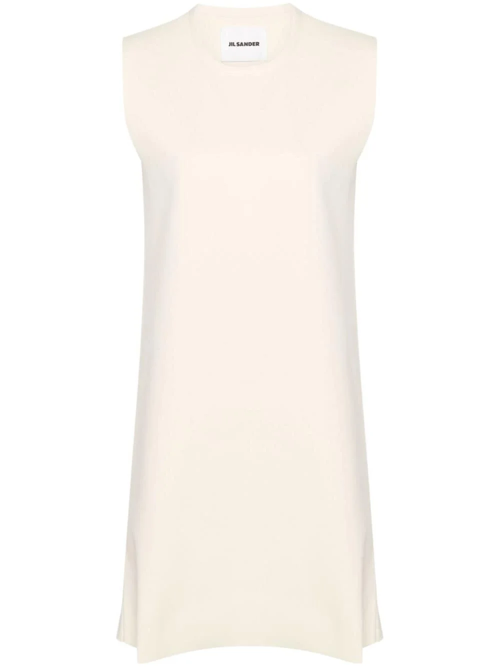 sleeveless mini dress Highlights - Vanilla white - Textured finish - Crew neck - Sleeveless - Internal logo tag - Thigh-length - Straight hem Made in Italy Composition Polyester 100% SIZE & FIT Model measurements Height 5 ft 11 in(1.8 m) Bust/Chest 32.67 in(83 cm) Hips 36.22 in(92 cm) Waist 24.4 in(62 cm) FittingInformation Designed to be unstructured, offering a loose fit throughout Made with a midweight knit, this piece offers some stretch This piece fits true to size – take your usual size Washing instructions Dry Clean Only