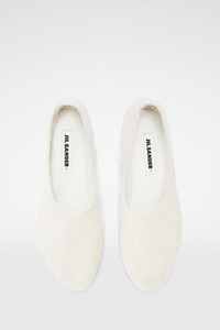 Calf hair flat slippers with leather footbed and sole Details - round toe - calf hair - leather footbed and sole - Jil Sander logo branded insole - upper 100% calf hair, sole 100% calf leather - made in Italy - StyleID: J44WZ0001P3788102