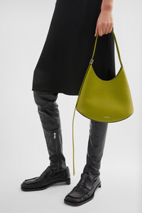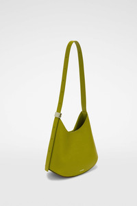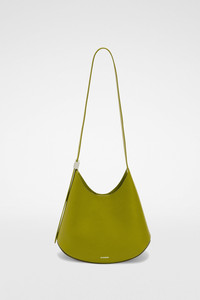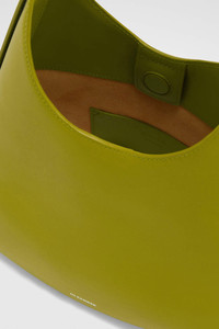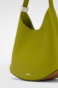 Small-sized leather shoulder bag with metal jewel buckle, curved base in contrasting leather and embossed Jil Sander logo Details - adjustable leather shoulder strap with metal jewel buckle - inner flat leather pocket with blind embossed Jil Sander logo - magnetic button closure - curved base in contrasting leather - suede lining - embossed Jil Sander logo - smoothed plain calf body - vegetable-tanned leather base - 100% calf leather - made in Italy - StyleID: J08ZH0062P8354321