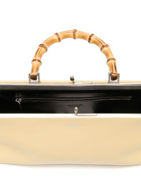 small Goji Bamboo tote bag Named for its berry-shaped clasp and top handle, Jil Sander’s small Goji Bamboo bag is crafted in pale-yellow leather to an elongated rectangle shape with a silver-tone metal frame to hold its structure. Highlights - Lemon yellow - Calf leather - Bamboo - Silver-tone logo lettering - Single top handle - Top clasp fastening - Main compartment - Internal zip-fastening pocket Made in Italy Composition Outer: Calf Leather 100% SIZE & FIT Measurement DEPTH 2.75 in(7 cm) HANDLE 3.54 in(9 cm) HEIGHT 4.72 in(12 cm) WIDTH 10.62 in(27 cm)