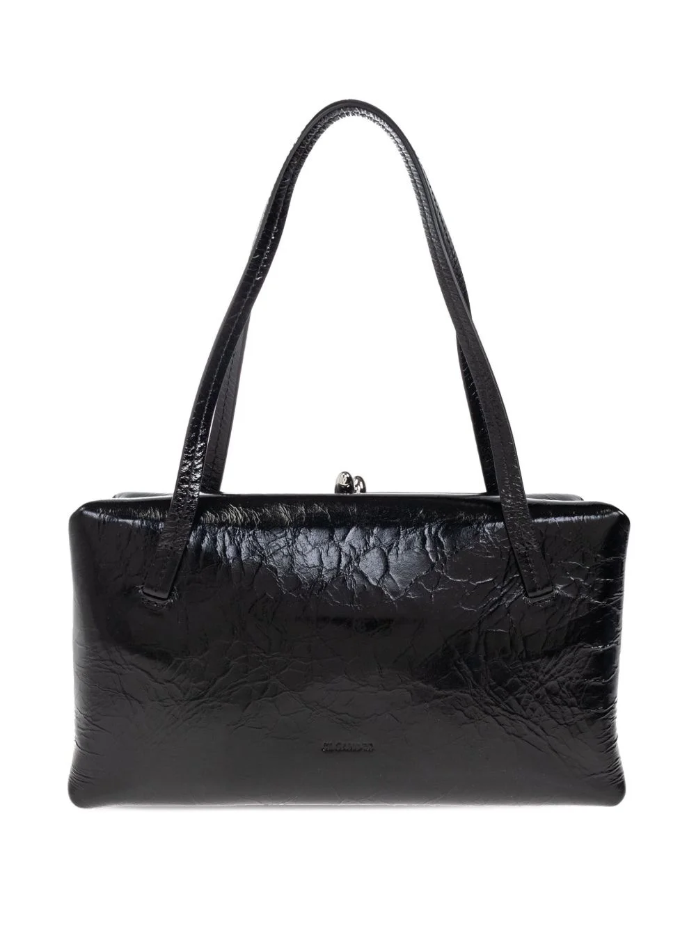 leather tote bag Highlights - Black - Crinkled finish - Top frame closure - Dual shoulder straps - Logo detail Made in Italy Composition Outer: Calf Leather 100% SIZE & FIT Measurement HEIGHT 5.9 in(15 cm) WIDTH 10.23 in(26 cm)