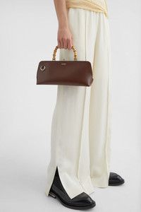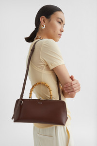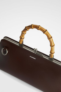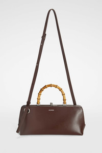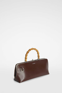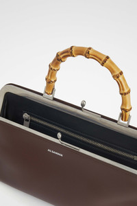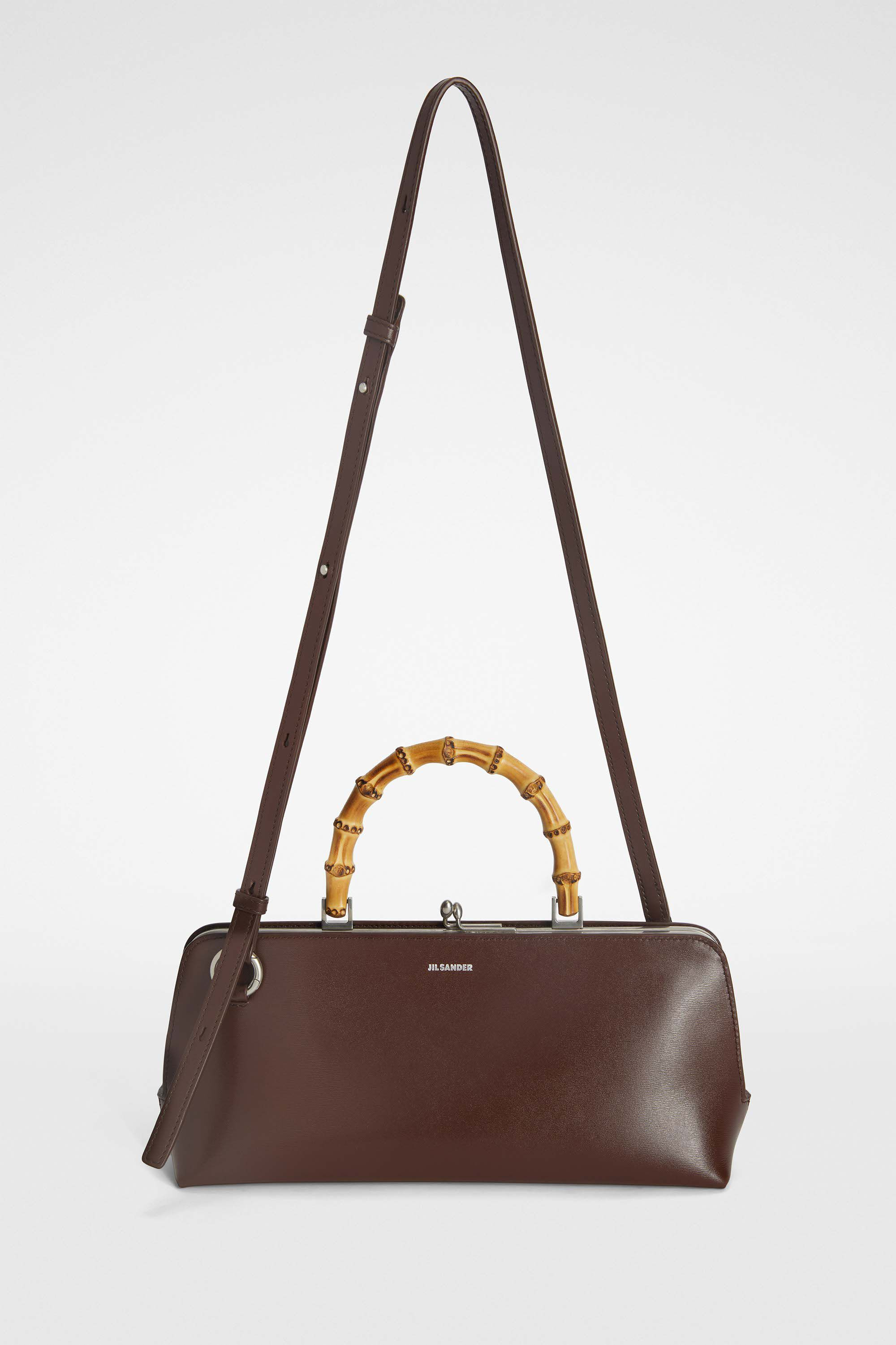 Small-sized leather shoulder bag with metal frame detail and embossed Jil Sander logo Details - bamboo top handle - detachable and adjustable leather strap - rectangular shape - clutch closure - nappa lining - inner zipped pocket - sleek metal frame detail - embossed Jil Sander logo - 100% calf leather - made in Italy - StyleID: J07ZH0042P5356205