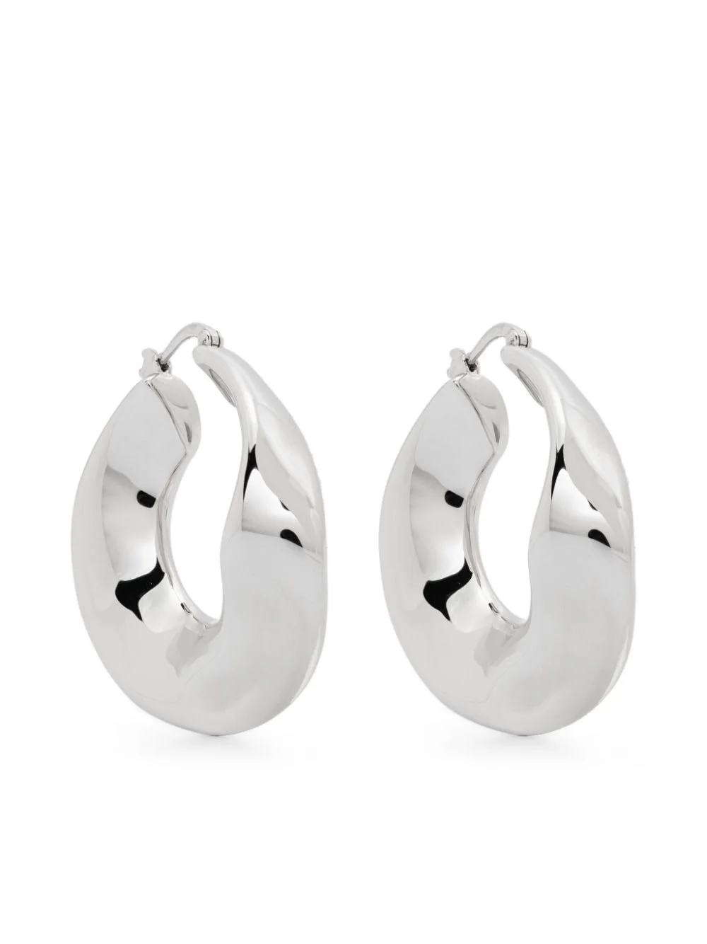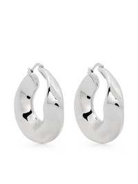 sculpted hoop earrings Highlights - Silver-tone - Eco brass - Polished finish - Bar-pin fastening - Sculpted hoop design - Hammered-effect finish - For pierced ears - These earrings come as a pair. Made in Italy SIZE & FIT Model measurements Height 5 ft 10 in(1.78 m) Bust/Chest 33.85 in(86 cm) Hips 36.61 in(93 cm) Waist 26.77 in(68 cm) Measurement HEIGHT 1.37 in(3.5 cm) Weight (single earring) 16 g(16 g) WIDTH 0.31 in(0.8 cm)