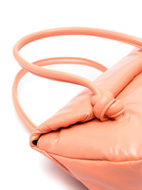 small padded tote bag Jil Sander infuses a playful appeal into its signature minimalist aesthetic with this padded shoulder bag. It is cut from leather in a glossy orange hue and finished with knots at the top handles. Highlights - Peach orange - Sheepskin - Crinkled finish - Padded design - Logo stamp to the front - Foldover top - Two rolled shoulder straps with knot detailing - Main compartment - Internal zip-fastening pocket - Contrast lining - Concealed magnetic fastening - This piece comes complete with a protective dust bag. Made in Italy Composition Outer: Calf Leather 100% Lining: Sheepskin 100% SIZE & FIT Model measurements Height 5 ft 9 in(1.76 m) Bust/Chest 31.1 in(79 cm) Hips 36.61 in(93 cm) Waist 24.8 in(63 cm) Measurement DEPTH 3.93 in(10 cm) HANDLE 9.05 in(23 cm) HEIGHT 4.72 in(12 cm)