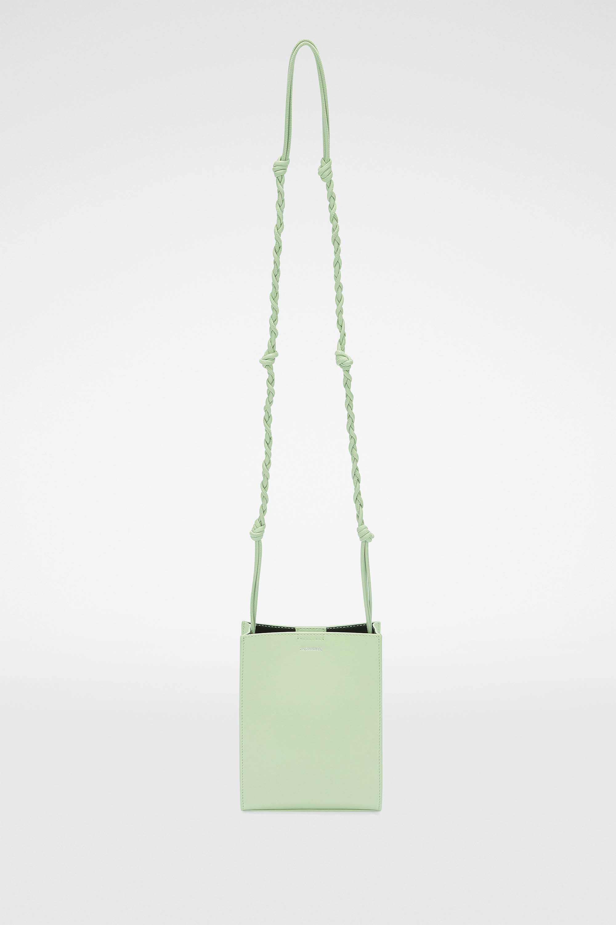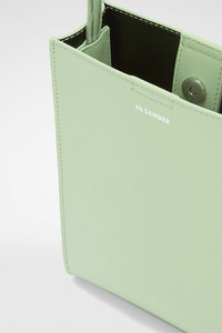 Small-sized leather shoulder and crossbody bag with hand-knotted strap and embossed Jil Sander logo Details - hand-knotted strap - rectangular shape - magnetic button closure - nappa lining - foil embossed Jil Sander logo - 100% calf leather - w 14 cm x h 19 cm x d 5 cm - made in Italy - StyleID: J07WG0001P5354459
