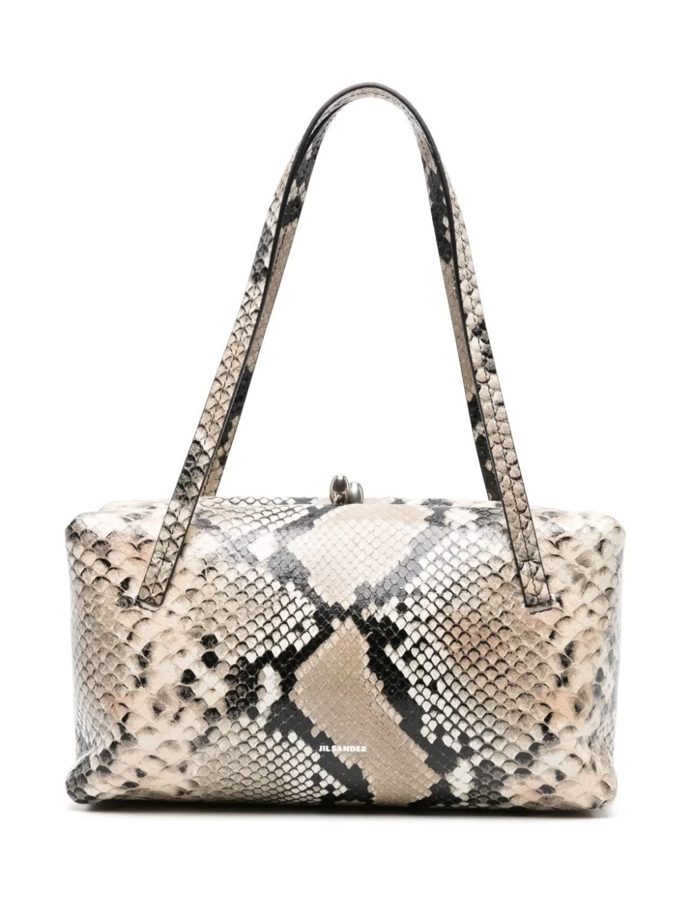 snakeskin-effect tote bag Highlights - Beige/black - Leather - Snakeskin effect - Push-lock fastening - Two long top handles - Main compartment - Internal card slot - Silver-tone hardware - Full lining - This piece comes complete with a protective dust bag. Made in Italy Composition Outer: Snake Print Leather 100% SIZE & FIT Model measurements Height 5 ft 10 in(1.78 m) Bust/Chest 31.49 in(80 cm) Hips 37 in(94 cm) Waist 23.62 in(60 cm) Measurement DEPTH 3.93 in(10 cm) HANDLE 7.87 in(20 cm) HEIGHT 5.11 in(13 cm) WIDTH 9.84 in(25 cm)