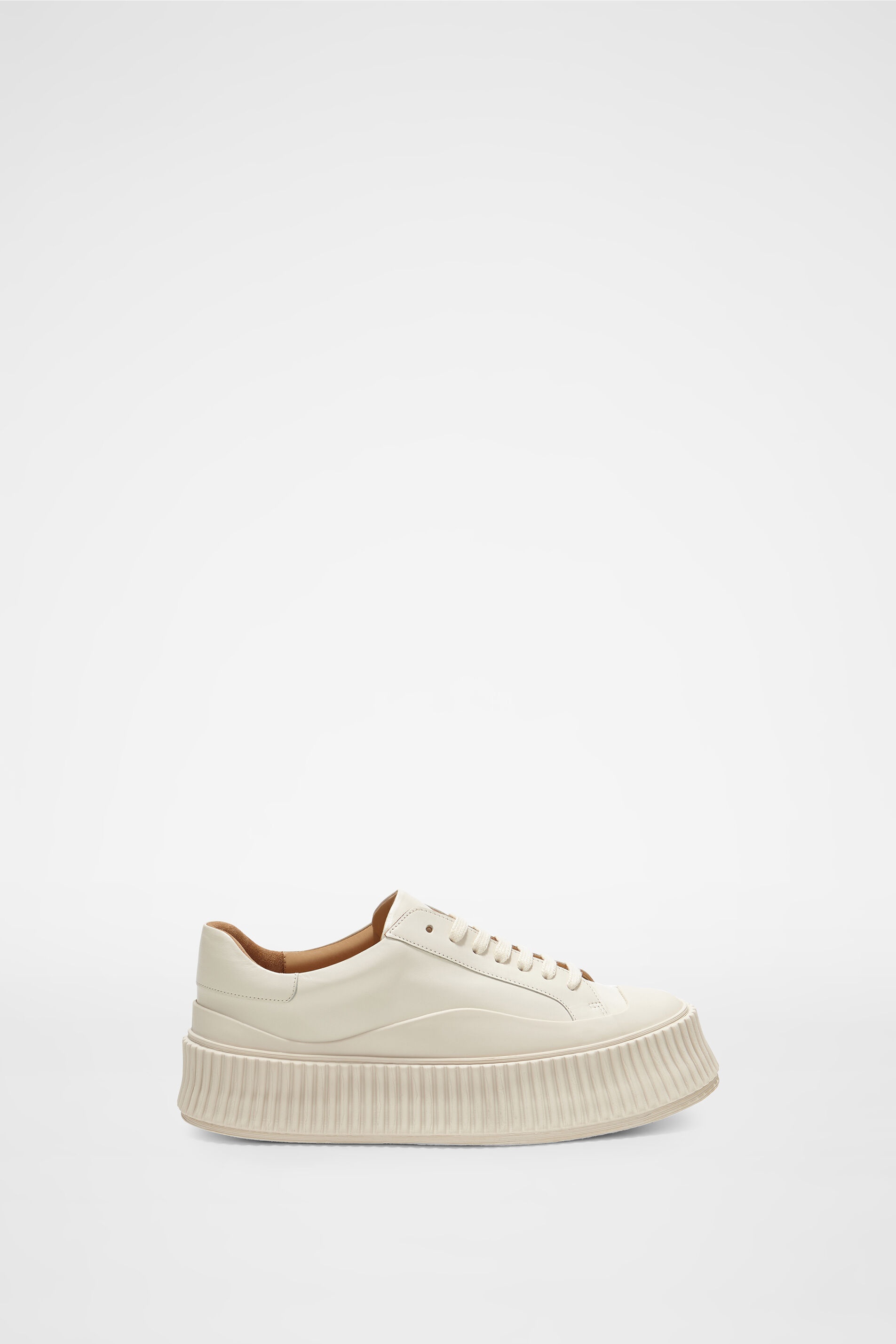 Leather sneakers with vulcanized rubber platform sole Details - round toe and lace-up front - leather insole - vulcanized rubber sole - Jil Sander logo branded insole - upper 100% calf leather, sole 100% rubber - made in Spain - style ID: JS32108A-15011