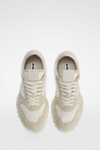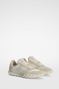 Low-top nylon and suede sneakers with rubber pebbles outersole Details - round toe and lace-up front - satin-effect nylon upper with suede trims - nylon and nappa lining - rubber pebbles outersole with embossed Jil Sander logo - fabric tongue with leather patch - Jil Sander logo embossed on back tab - Jil Sander logo branded insole - upper 100% polyester, suede trims 100% calf leather - made in Italy - StyleID: J16WS0031P0156122
