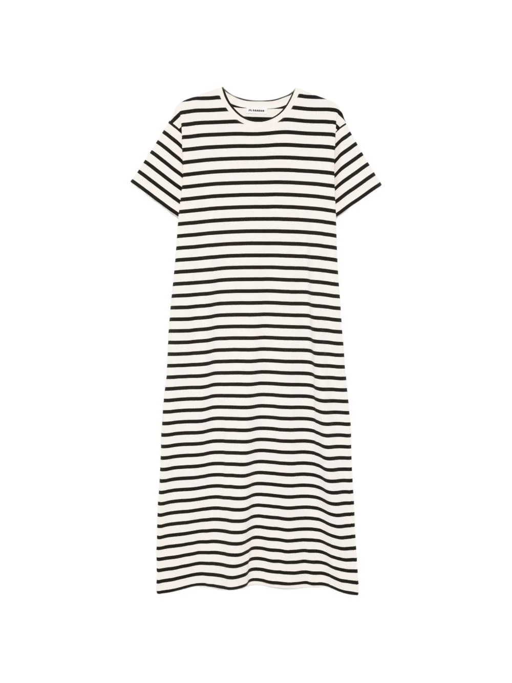 striped short sleeve dress Highlights - Black stripes - Round neck - Short sleeves - T-shirt silhouette - Straight hem Made in Italy Composition Cotton 100% Washing instructions Read Manufacturer Guidelines
