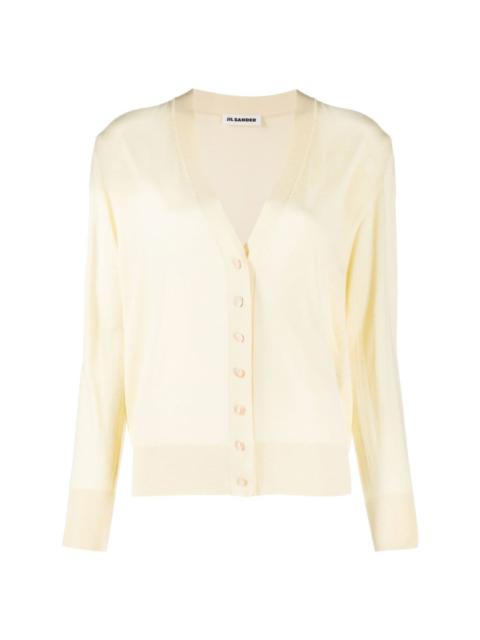 V-neck cardigan Highlights - Navy blue - Button fastening - Long sleeves - V-neck Made in Italy Composition Cashmere 100% Washing instructions Read Manufacturer Guidelines
