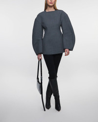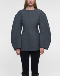 Crew Neck Top from Jil Sander. A trendy long-sleeved top with a sculptural shape. Designed with a triangular neckline and long sleeves with shaped seams. Made in Italy from 100% wool. Size and Fit - Fits true to size, choose your usual size - The model is 175 cm tall and is wearing size S Specification - Article number - ID: 173836-082 - Brand: JIL SANDER - Color: Grey - Washing Instructions: Dry clean - Made of: Composition: 100& wool