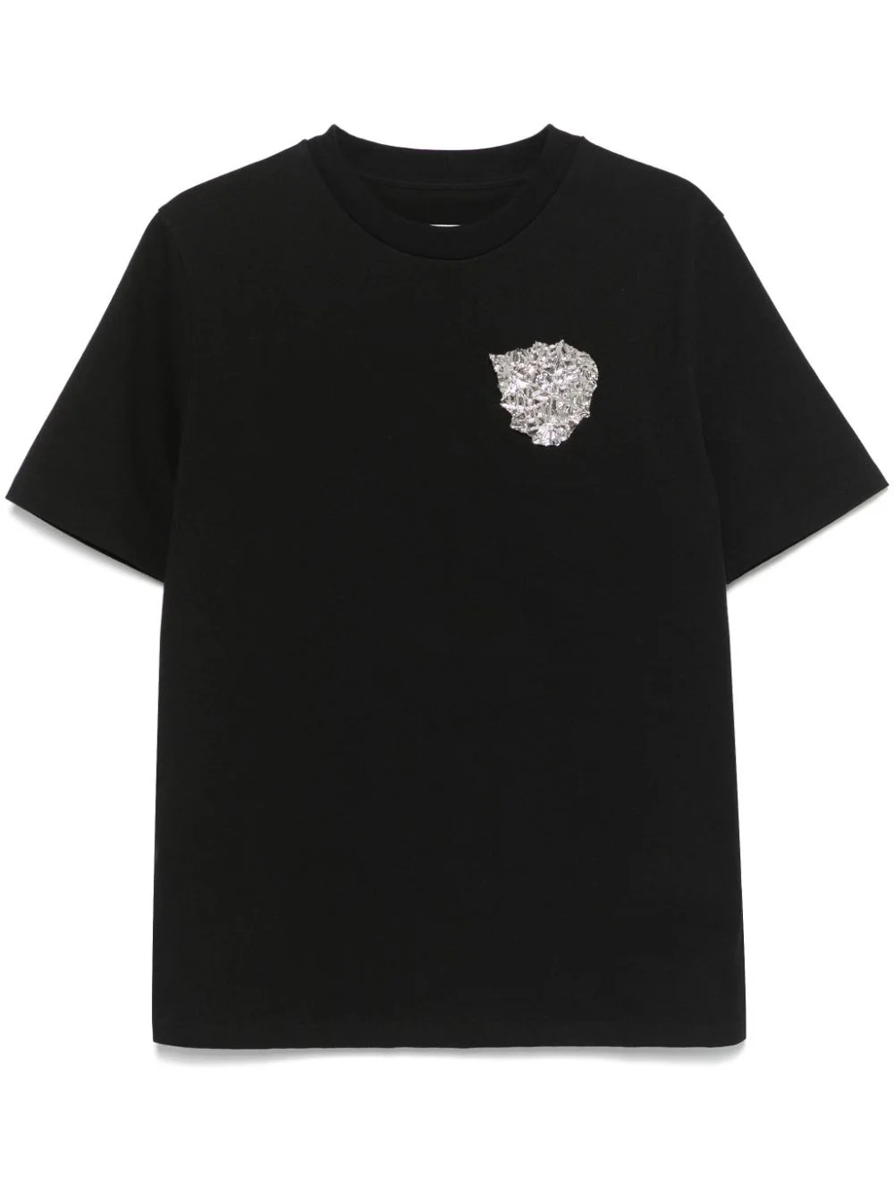 leaf-applique T-shirt Highlights - Black - Cotton - Jersey texture - Leaf applique - Crew neck - Short sleeves - Straight hem Made in Italy Composition Cotton 100% SIZE & FIT Model measurements Height 5 ft 11 in(1.8 m) Bust/Chest 31.49 in(80 cm) Hips 36.61 in(93 cm) Waist 24.4 in(62 cm) FittingInformation Designed to be unstructured, offering a loose fit throughout Made from a midweight non-stretch fabric, this piece offers minimal elasticity when worn Washing instructions Dry Clean Only