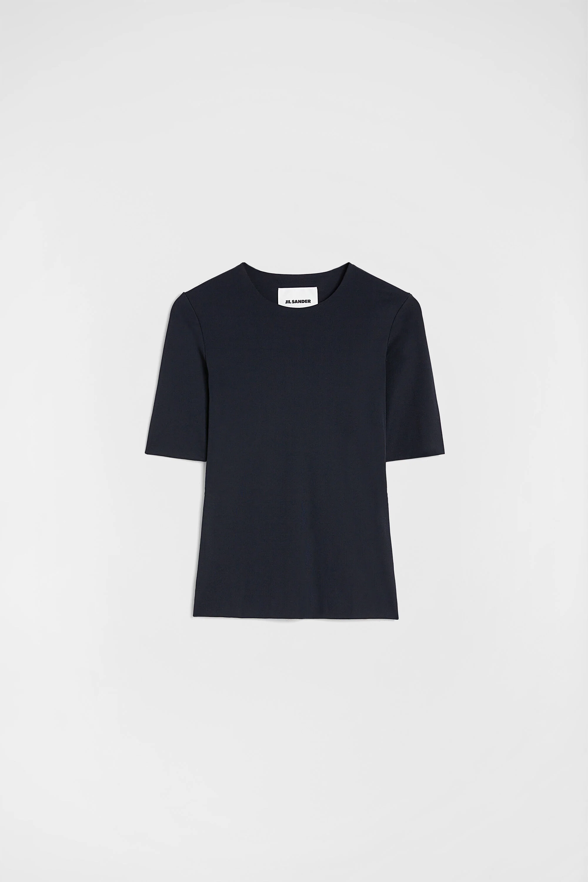 Short-sleeved viscose crepe t-shirt Details - fitted shape - crew neck - fluid viscose crepe - 82% viscose-rayon 18% polyamide-nylon - made in Italy - StyleID: J04NC0002J65016401 Care - dry clean only - iron with care Fit - model is 177cm/5'9" and is wearing a size 34 DE - Please note that the physical label of the item will show the German size