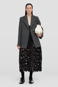 Tailored wool jacket Details - sculptural shape and slightly oversized - one-and-a-half breasted - hidden button closure - dropped shoulders - flap pockets - notch lapel - wool melange - 99% virgin wool, 1% polyamide - made in Italy - style ID: J03BN0019-J40040 Care - dry clean only Size and measurements - German sizing - model is 177cm/5'9" and is wearing a size 34 DE