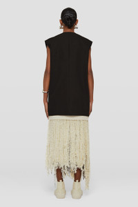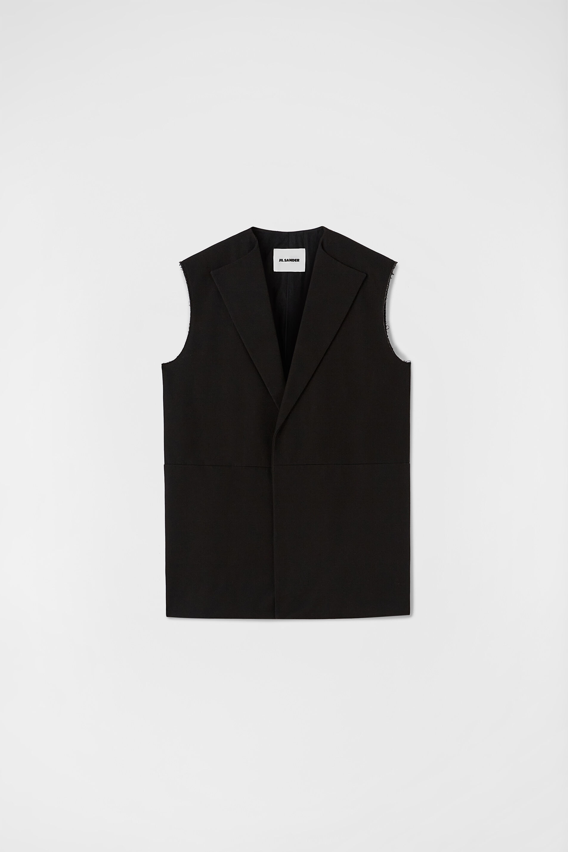 Single-breasted tailored sleeveless jacket Details - oversized - primary fabric 100% cotton , lining 100% cotton - made in Italy - style ID: J03BN0110-J45136 Care - dry clean only Size and measurements - German sizing - model is 177cm/5'9" and is wearing a size 34 DE - height : 80 cm