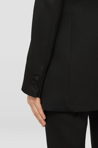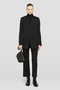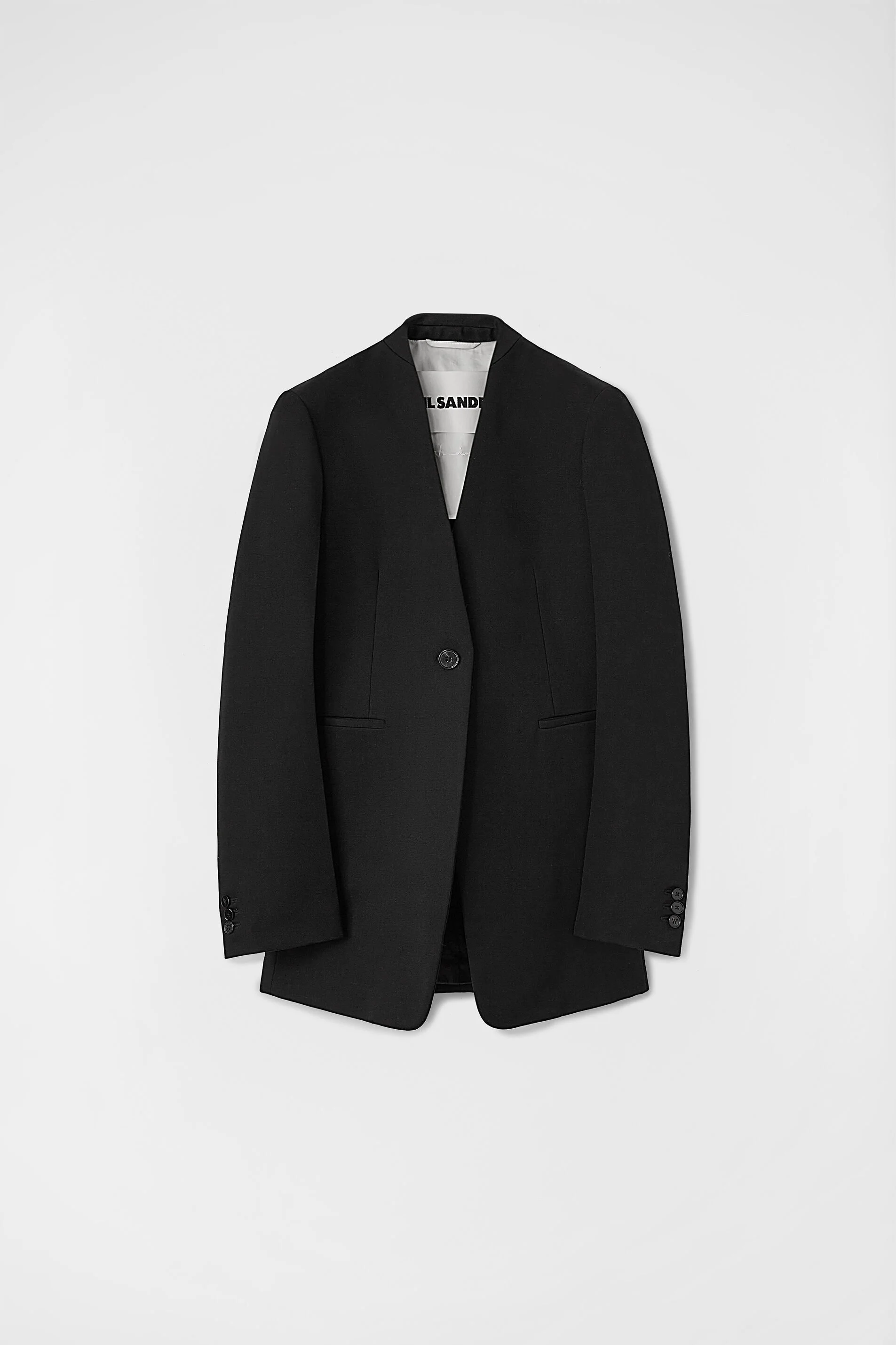 Tailored fitted grain de poudre wool jacket with single button closure Details - structured fit - we recommend taking one size down - collarless single-breasted - one-button closure - low-break - welt pockets - grain de poudre wool - 100% wool, lining 100% viscose-rayon, body lining 100% cotton - made in Italy - StyleID: J04BN0001J40021001 Care - dry clean only - iron with care Fit - model is 177cm/5'9" and is wearing a size 34 DE - Please note that the physical label of the item will show the German size
