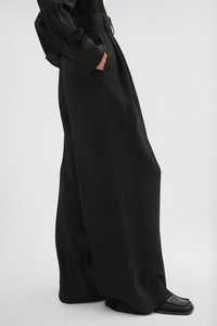 Wide-leg fluid silk and viscose trousers with front pleats Details - dropped crotch and slightly high waist - voluminous leg - zip and hook closure - front side-seam pockets - back welt pockets - cotton pocket lining - viscose lining - fluid silk and viscose - 58% viscose-rayon 42% silk - made in Italy - StyleID: J03KA0292J65005001 Care - dry clean only - iron with care Fit - model is 177cm/5'9" and is wearing a size 34 DE - Please note that the physical label of the item will show the German size