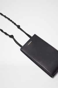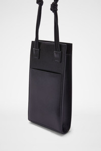 Leather phone case with hand-knotted strap and embossed Jil Sander logo Details - hand-knotted strap - magnetic button closure - nappa lining - foil embossed Jil Sander logo - 100% calf leather - made in Italy - StyleID: 8057763619248