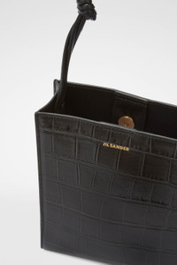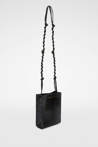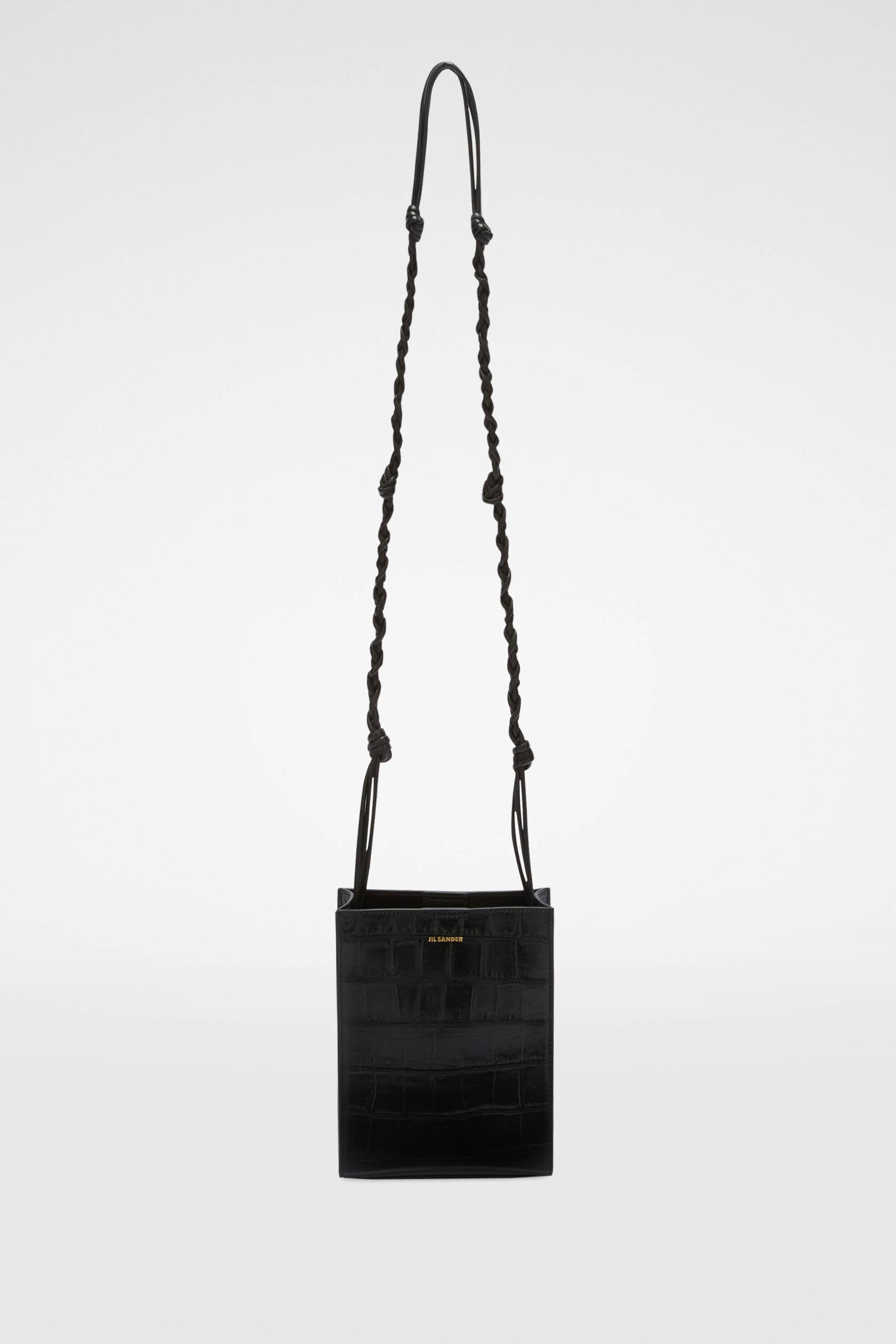 Small-sized leather shoulder and crossbody bag with hand-knotted strap and embossed Jil Sander logo Details - hand-knotted strap - rectangular shape - magnetic button closure - nappa lining - foil embossed Jil Sander logo - 100% calf leather - made in Italy - style ID: J07WG0001-P5359 Size and measurements - height : 14 cm - width : 5 cm - depth : 19 cm
