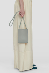 Small-sized leather shoulder and crossbody bag with hand-knotted strap and embossed Jil Sander logo Details - hand-knotted strap - rectangular shape - magnetic button closure - nappa lining - foil embossed Jil Sander logo - 100% calf leather - made in Italy - style ID: J07WG0001-P5354 Size and measurements - height : 14 cm - width : 5 cm - depth : 19 cm