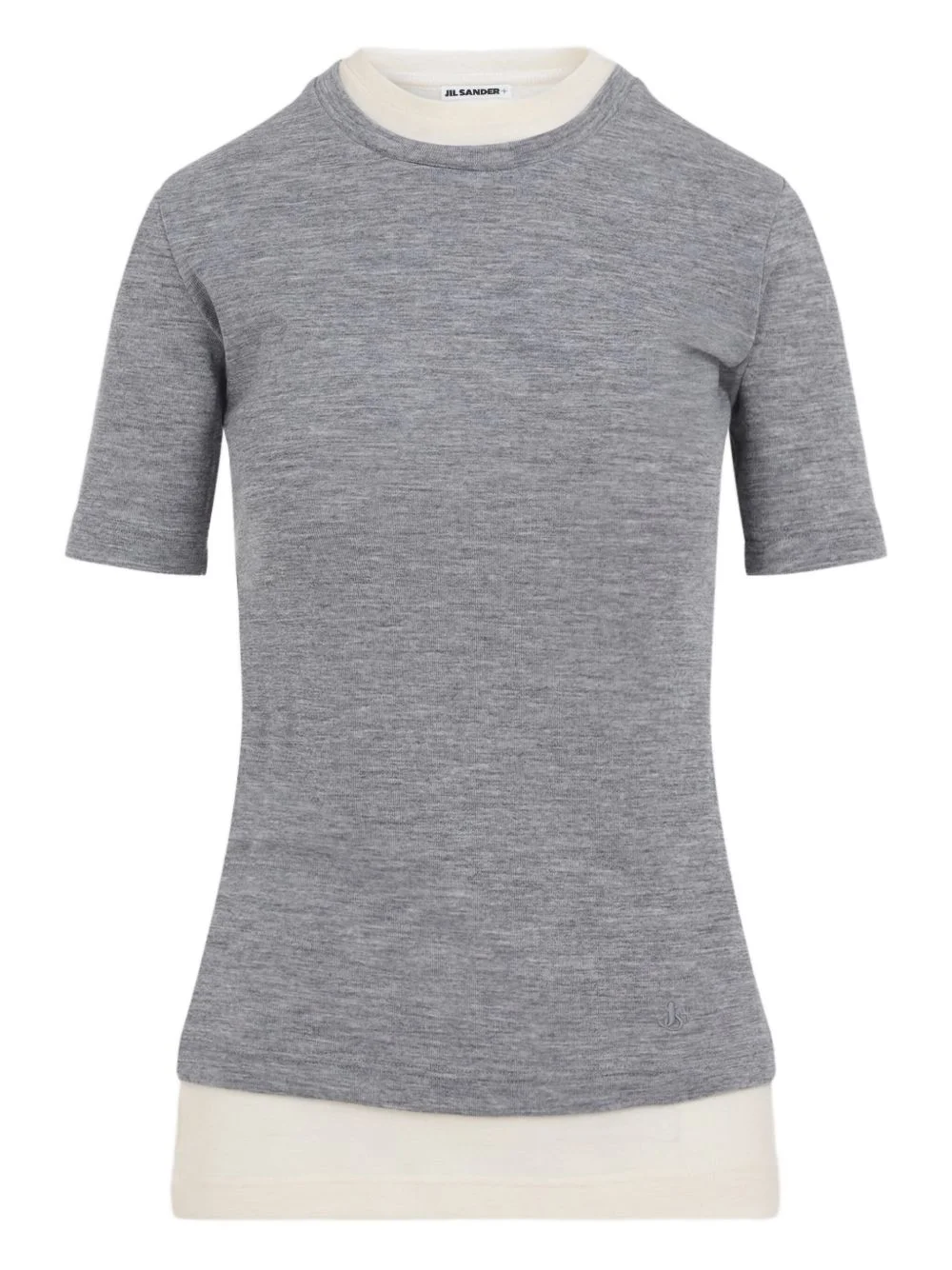 layered short-sleeved T-shirt Highlights - Grey - Short sleeves - Crew neck - Layered design - Wool Made in Italy Composition Wool 100% Washing instructions Read Manufacturer Guidelines
