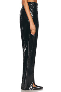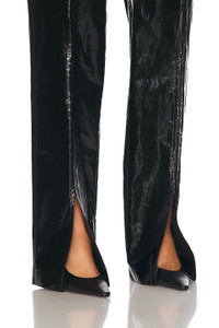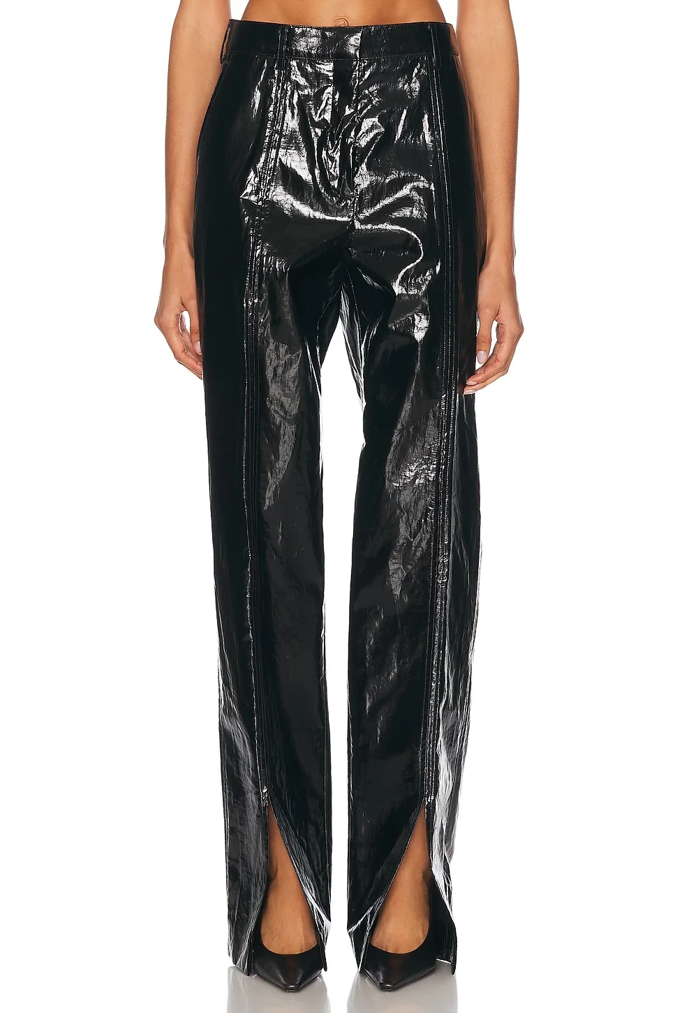 Details - Self 1: 100% flax linen - Self 2: 100% polyurethane - Pocket Lining: 100% cotton - Made in Italy - Dry clean only - Zip fly with hook and bar clasp and button closures - 4-pocket design - Front slit detail at hem - High-waisted fit - Faux patent leather fabric - Our Style No. JILS-WP20 - Manufacturer Style No. J03KA0301-J60082-001